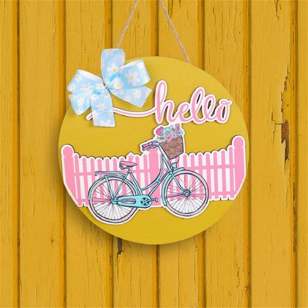 Valentine'S Day Lovely Wreath Sign Hanging Decoration For Storefront, Red Umbrella & Pink Bike Design, Creative Door Hanging Ornament For Valentine'S Day Gift