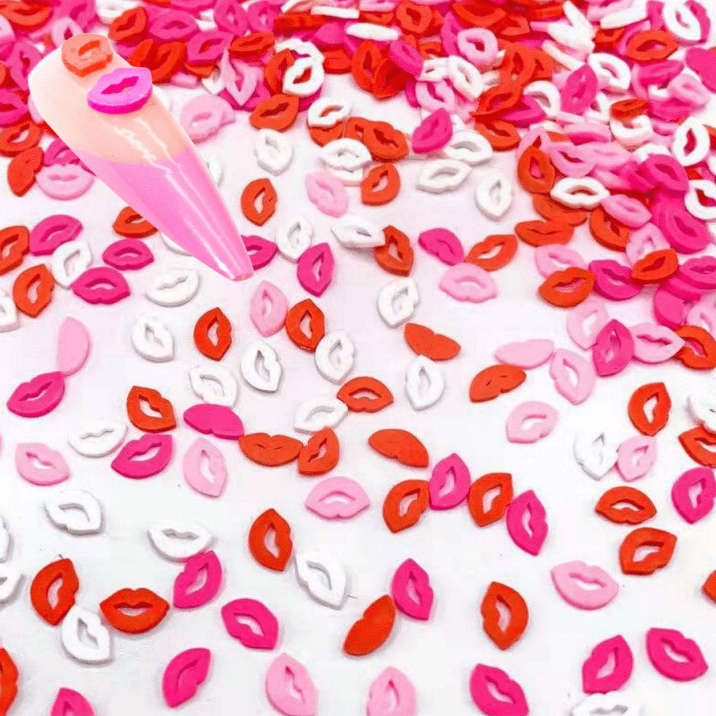 Valentine'S Day Themed Red Lips Shaped Nail Decoration With Glitter, Polymer Clay Thin Slices For Diy Jewelry Making, Cream Glue, Handcraft Material, Crystal Mud Filling