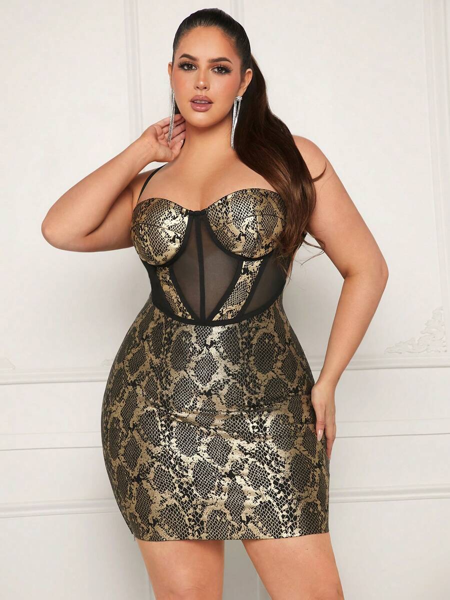 SHEIN SXY Valentines Women'S Plus Size Metallic Texture Bandage Dress