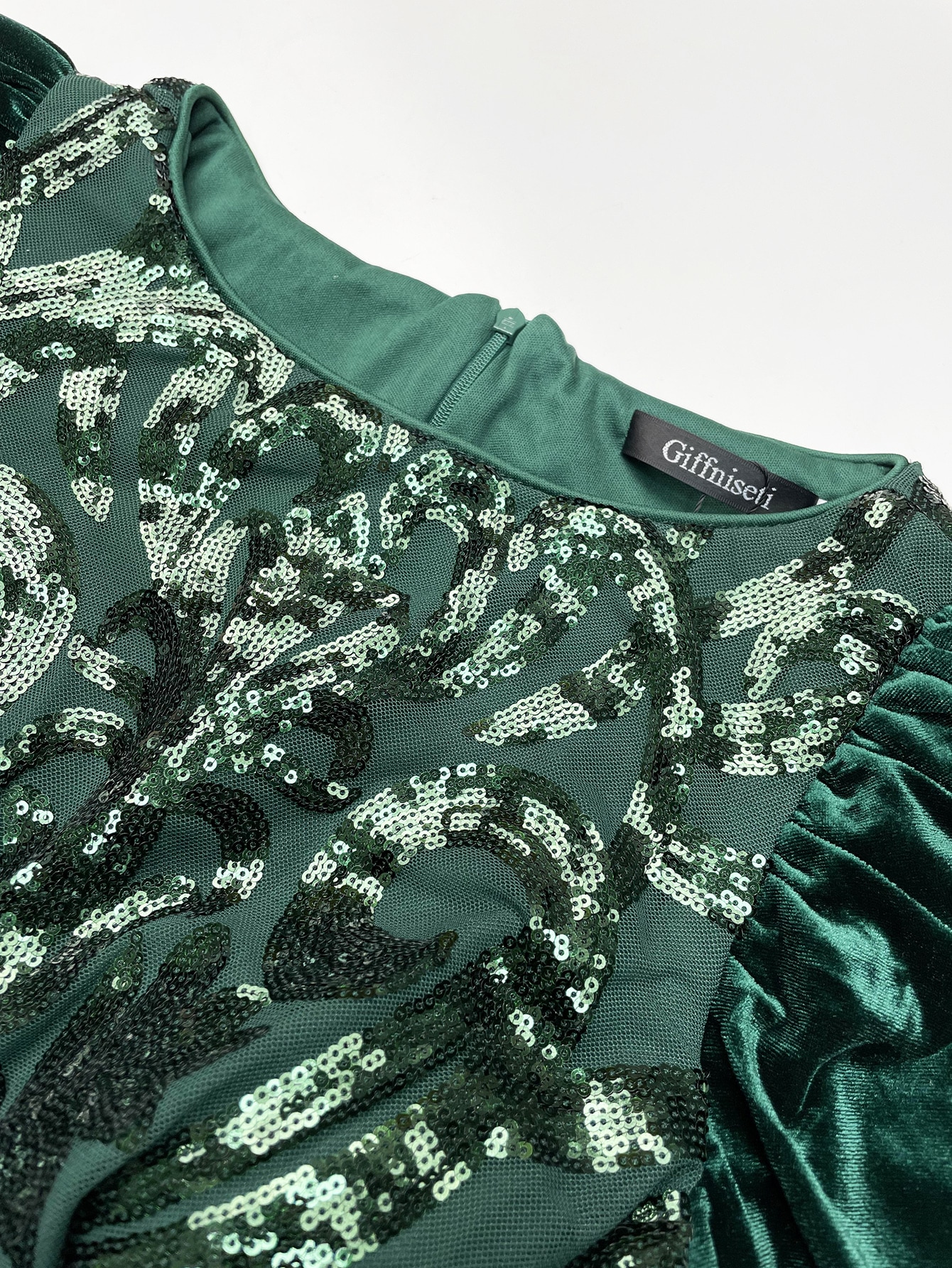 Giffniseti Velvet Lantern Sleeve Mermaid Hem Sequin Prom Dress