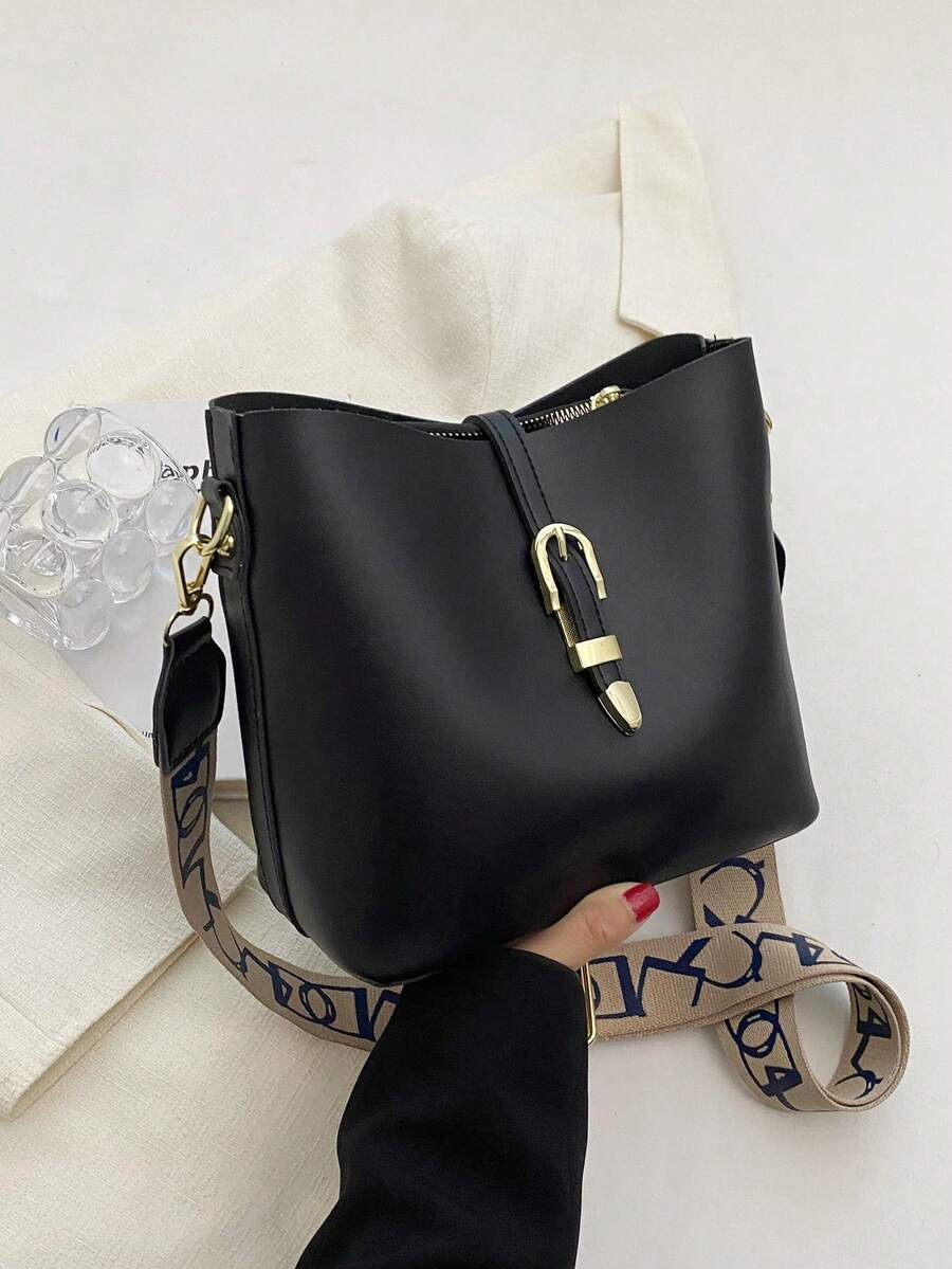 Vintage Buckle Decorated Bucket Shoulder Handbag, Ladies Luxury Women'S Geometric Strap Crossbody Bag, Classic Sling Bag, Faux Casual Designer Retro Fashion Wallet, Gift For Mom, Commuting To Work, Shopping Use