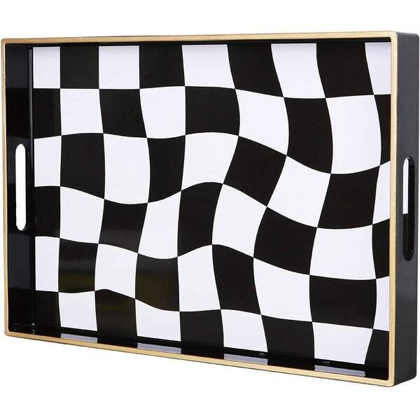 Vintage Chessboard Pattern Waterproof Rectangle Serving Tray For Dining Table Or Tea Table, Ins High Value