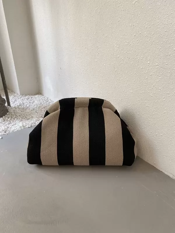 Vintage Coin Style Classic Striped Color Block Knitted Clutch Bag For Vacation