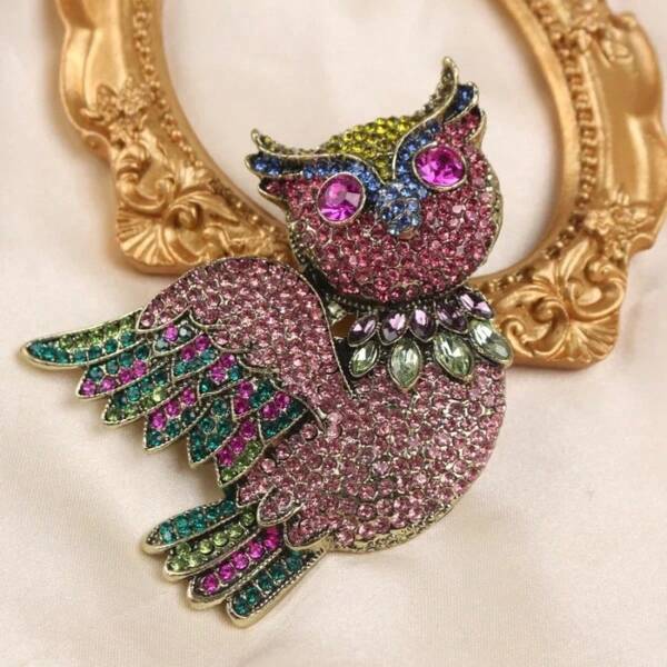 Vintage Court Style Classic Unisex Owl Crystal Heavy Industry Brooch And Baroque Animal Design Rhinestone Badge For Dress, Accessories, Jewelry Gifts
