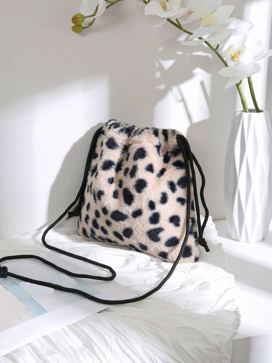 Vintage Leopard Print Autumn/winter Drawstring Shoulder Crossbody Bag, Versatile