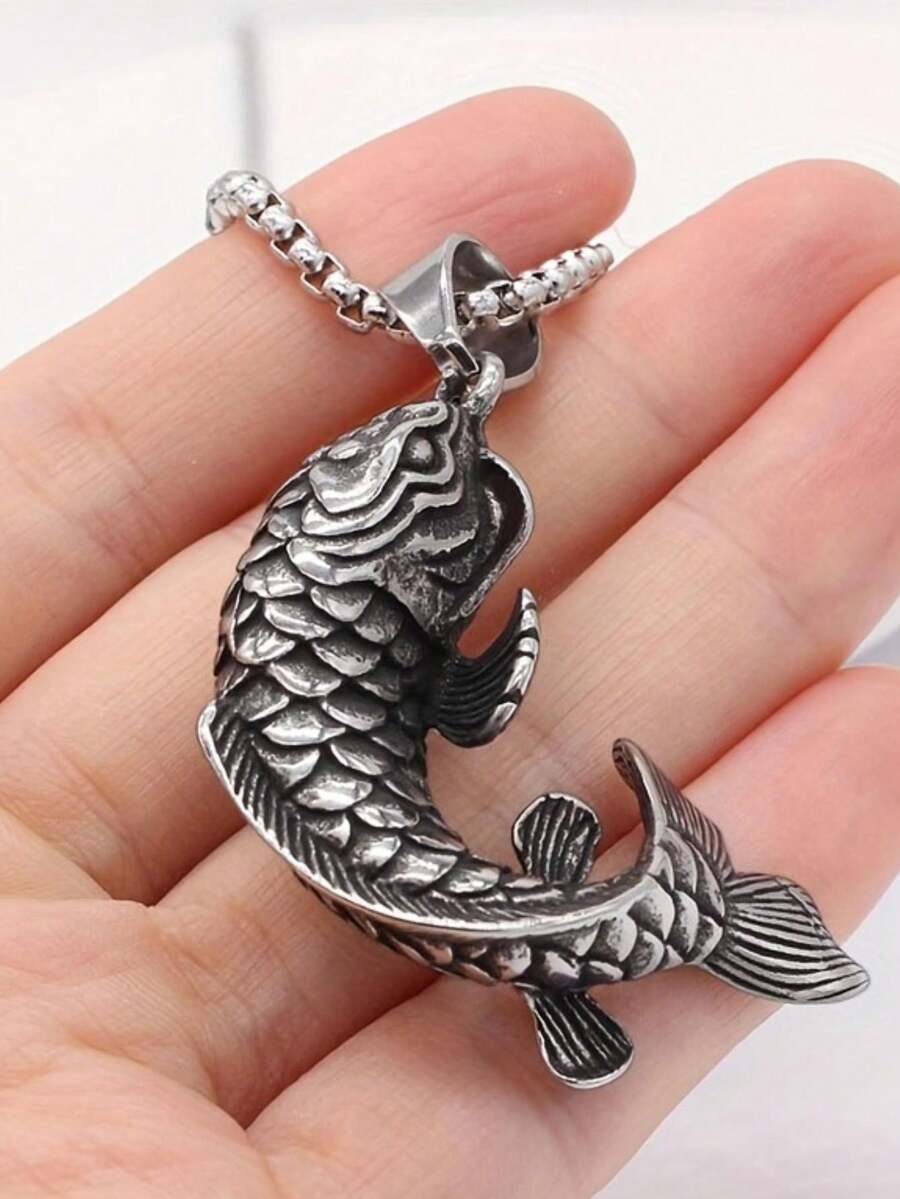 Vintage Lucky Koi Fish Pendant Necklace For Men And Women, Punk Hip Hop Style Ornament With Animal Amulet, Perfect For Party And Gift