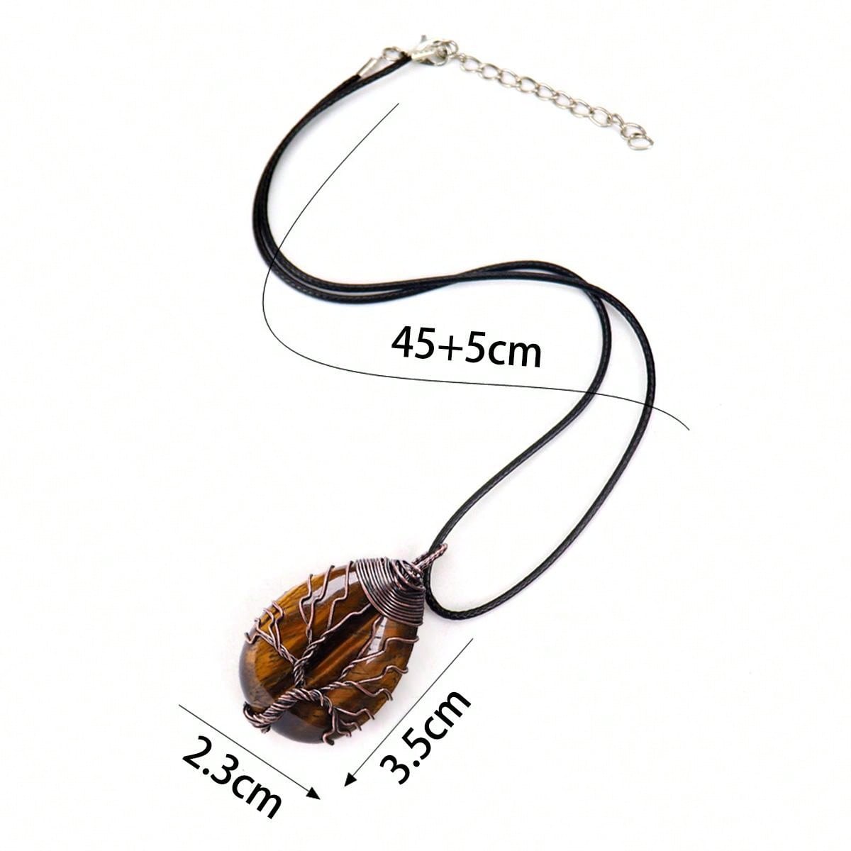 Vintage Natural Gemstone Crystal Tigers Eye Black Chain Necklaces Tree Of Life Healing Stones Hippie Chakra Gemstone Pendant Jewelry Necklaces Gifts For Men Women-Yellow