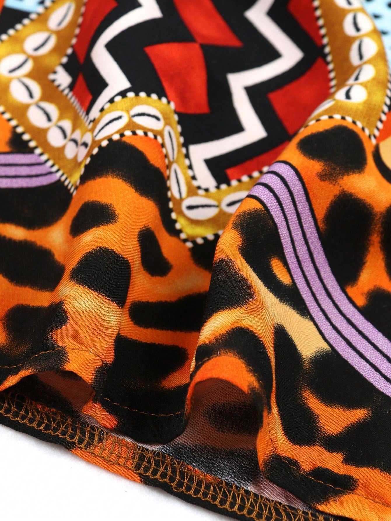 Vintage Print Split Thigh Caftan Dress