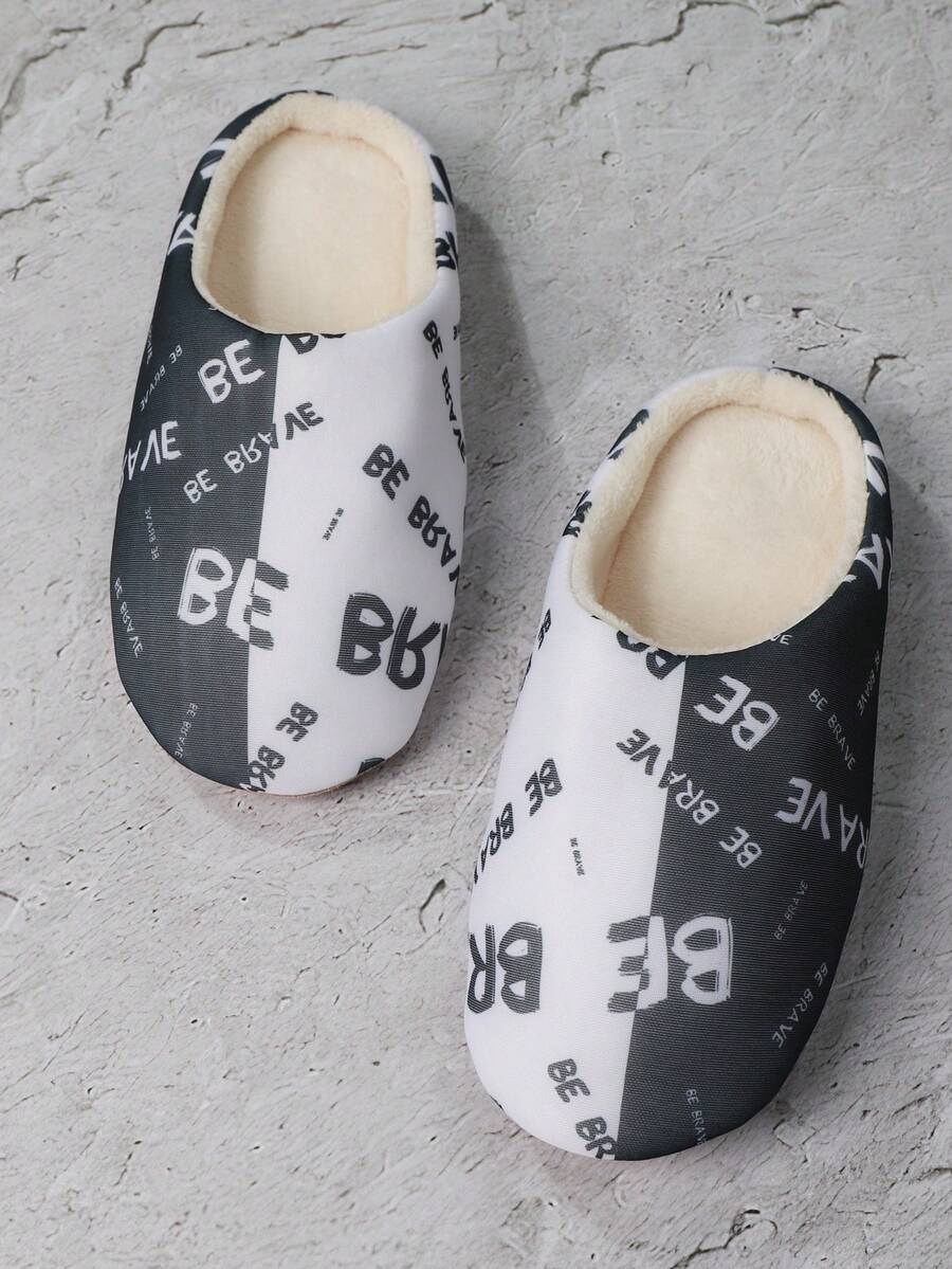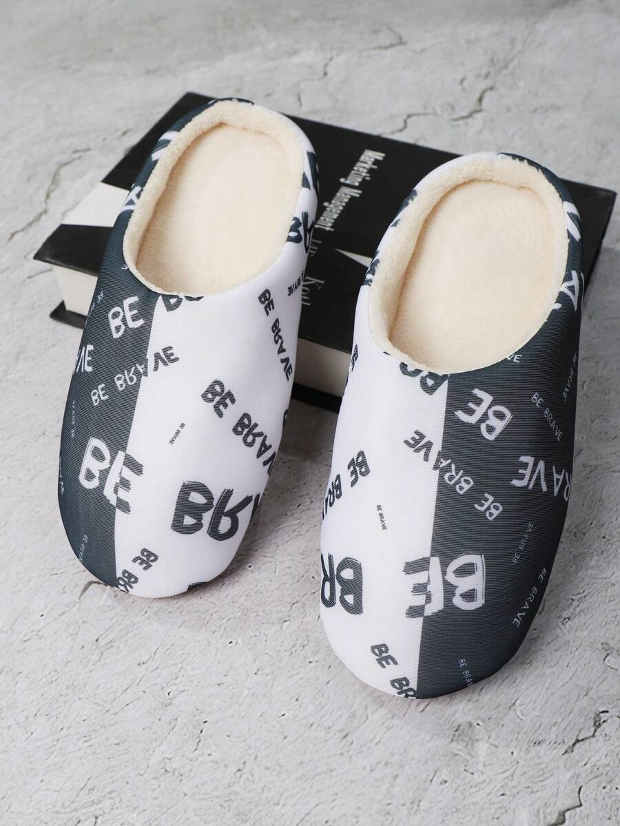 Vintage Style Men's Cool Letter Printed Slippers With Elasticity And Dirt Resistance, Suitable For Home And Bedroom