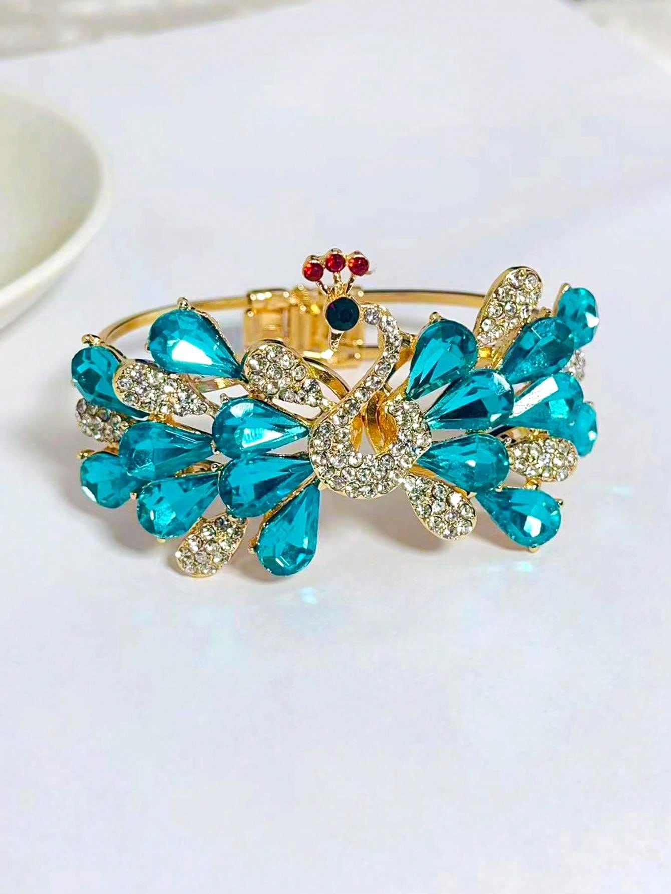 Vintage Trendy Peacock Shaped Hollow Out & Rhinestone Decor Bracelet