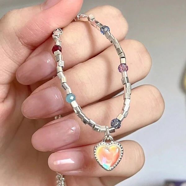 Vitality Girl Love Moonstone Beaded Pendant Necklace Female Niche Design Sweet Beaded Collarbone Chain1PC