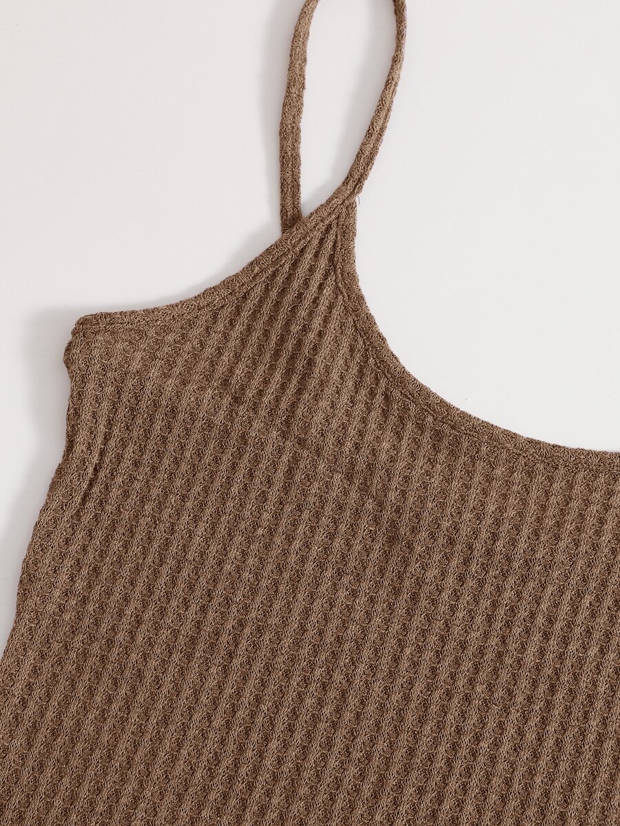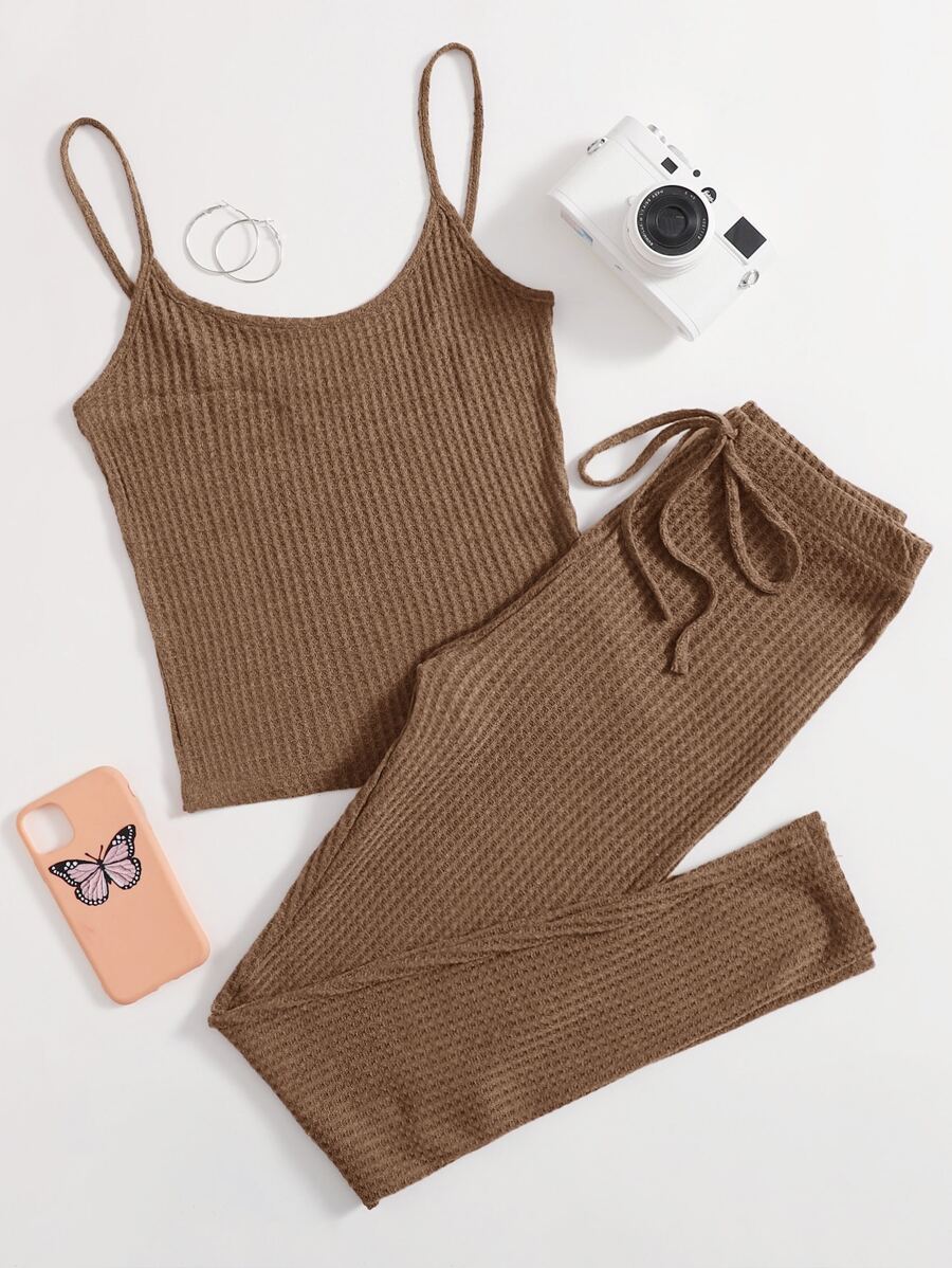 SHEIN EZwear Waffle Knit Cami Top & Knot Waist Leggings Set