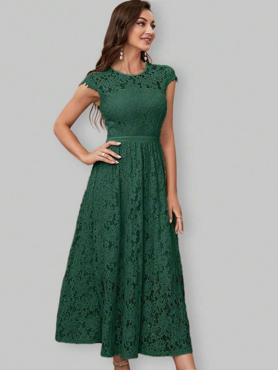 Waist Joint Long Lace Flared Bridesmaid Dress With Elegant Design