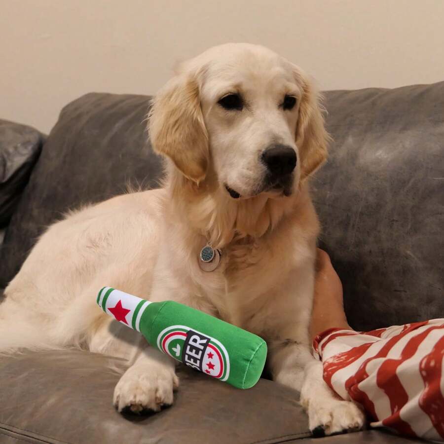 Water Bottle Dog Squeaky Toys, No Stuffing Crinkle Beer Dogs Chew Toy For Puppy Small Medium Large Breed Chewer Durable Plush Squeak Puppies Teething Chewing Interactive Boredom And Stimulating Gifts