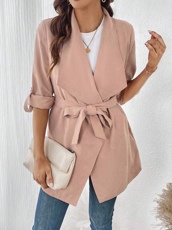 SHEIN LUNE Waterfall Collar Roll Tab Sleeve Belted Coat