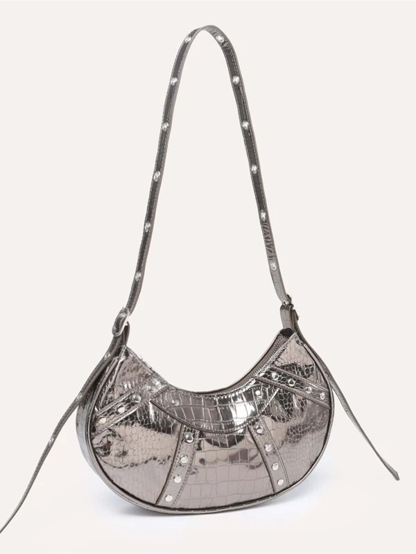 Waterproof,Lightweight,Business Casual Metallic Crocodile Embossed Studded Decor Hobo Bag For Teen Girls Women College Students,Rookies & White-collar Workers Perfect for Office,College,Work ,Business,Commute,Outdoors, Travel, Outings