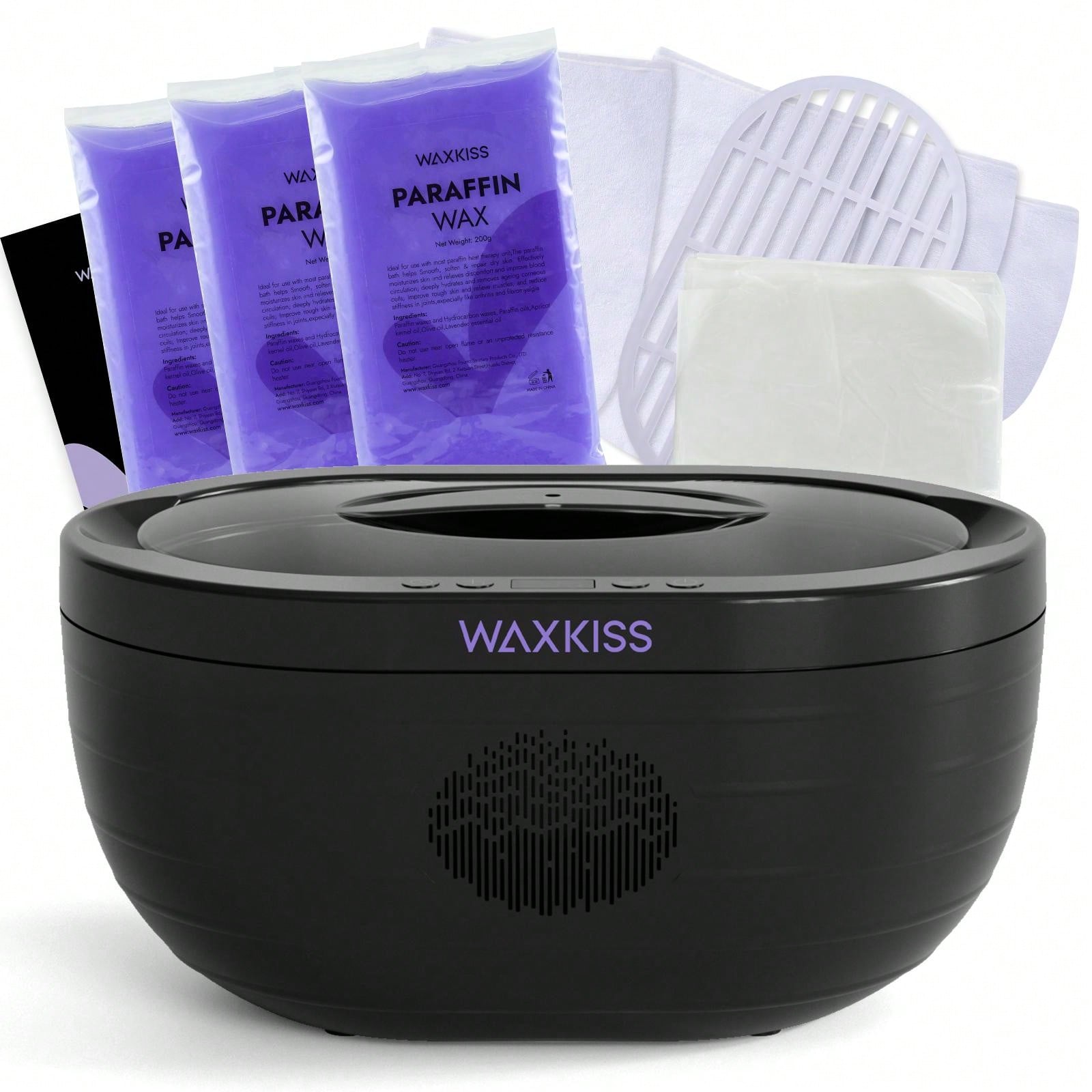 Waxkiss Beauty Wax Warmer Kit, Black American Plug, Wax Bath, Quick Heating, Large Capacity, Suitable For Hand And Foot Beauty, Wax Deeply Moisturizes Your Skin, Promotes Blood Circulation, Relieves Arthritis. A Moisturizing Kit With A Banafen Wax Heating Machine For Home Or Beauty Salon Use (Including 1 Machine, 4 Packs Of Beauty Wax, 25 Pairs Of Disposable Gloves, 1 Pair Of Gloves For Hands And Feet, Partition, Brush, Scraper)