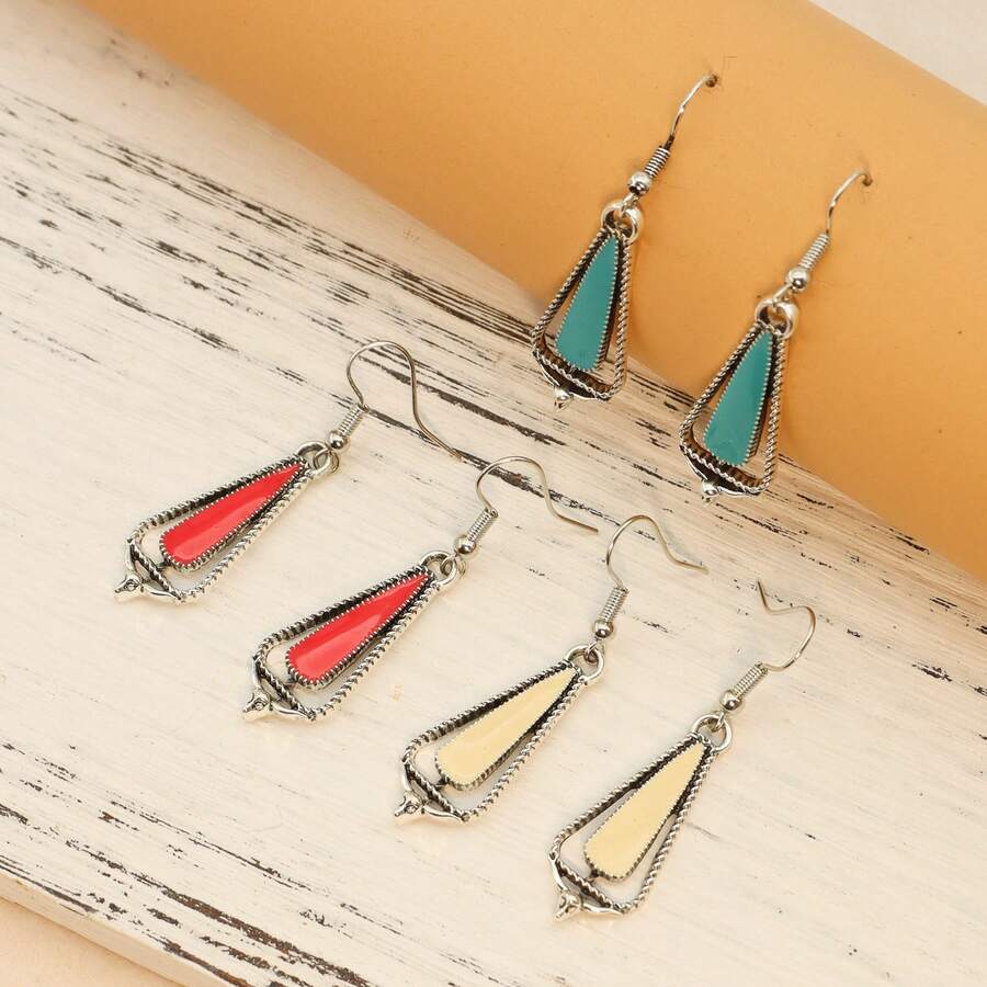 Western Cowboy Style Zinc Alloy Oil Drip & Water Drop Shape Cowboy Earrings, Suitable For Women'S Daily Wear, Gift Giving And Party Attendance