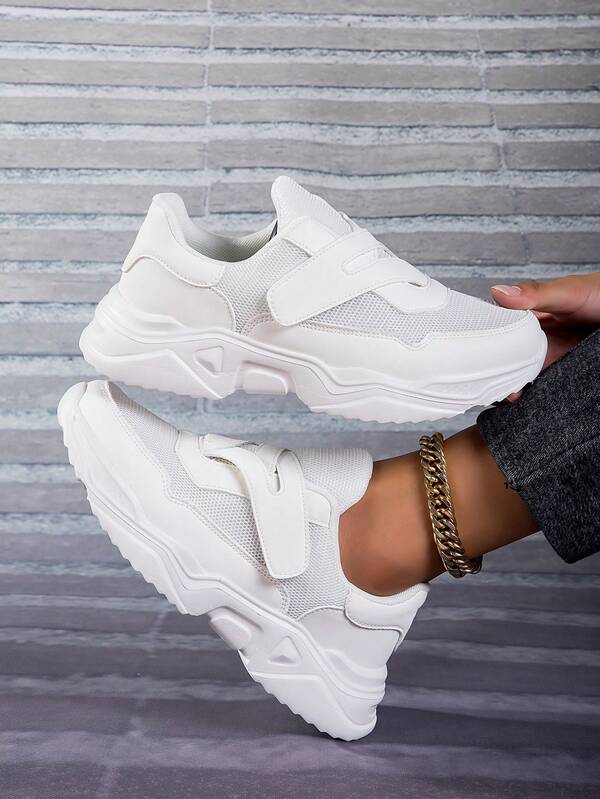 White Elevator Sneakers With Chunky Sole And Mesh, Casual, Comfortable Anti-Slip Shoes For Work, School And Walking