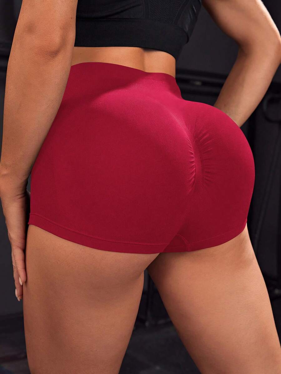 SHEIN Yoga Basic Wide Waistband Scrunch Butt Sports Shorts
