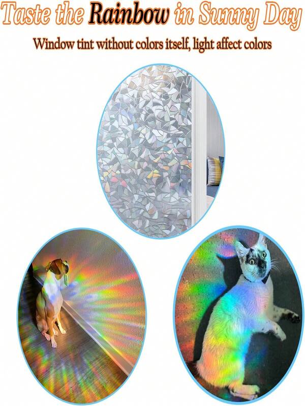 Window Privacy Film, Static Cling Rainbow Film Decorative Stained Glass Window Film, Heat Control Window Tinting Film For Home