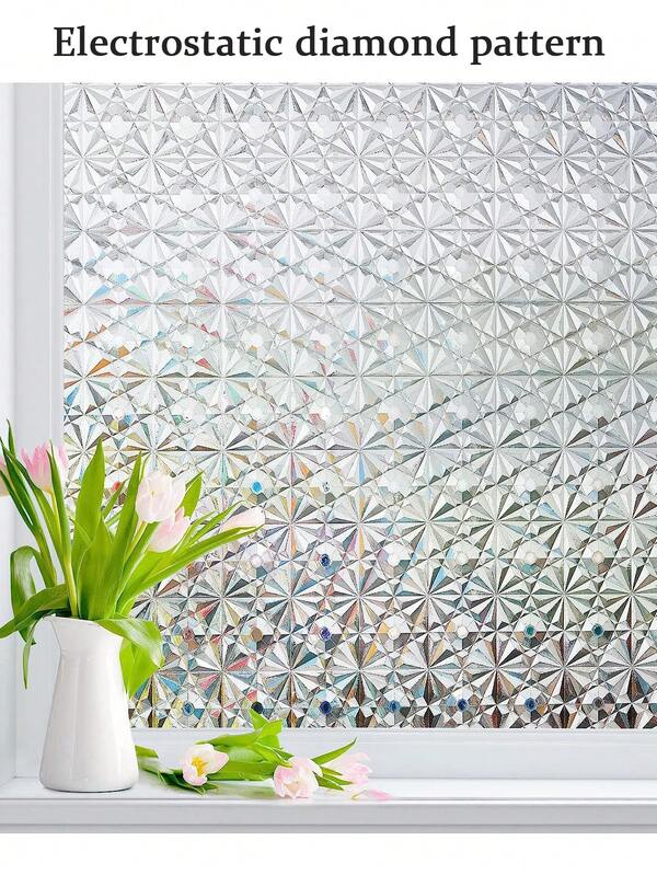 Window Privacy Film Matte Glass Window Sticker: Rainbow Glass Bathroom Film Diamond 3d Electrostatic Prism Opaque Antique Frosted Decorative Door Cover