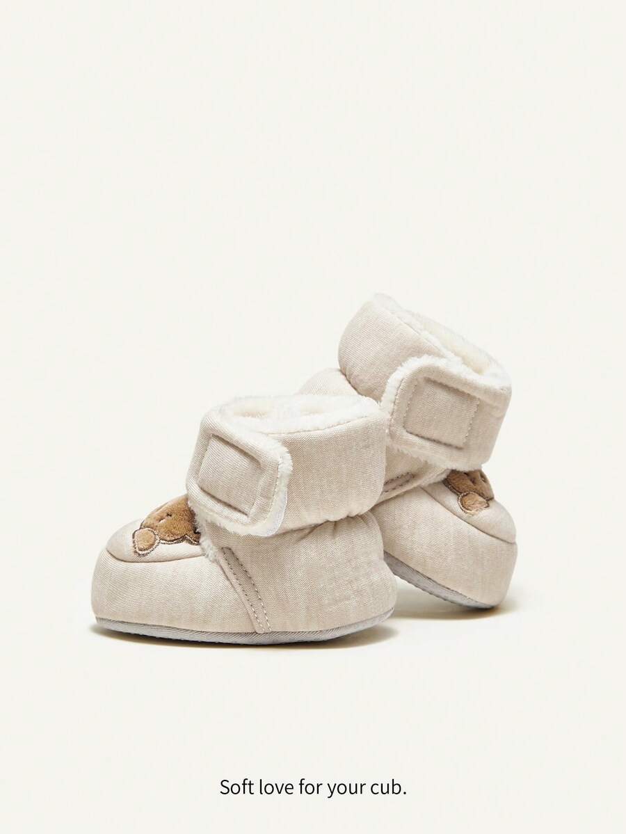 Cozy Cub Winter Cartoon Bear Pattern Baby Boots With Thickened Fleece For 0-1 Year Old