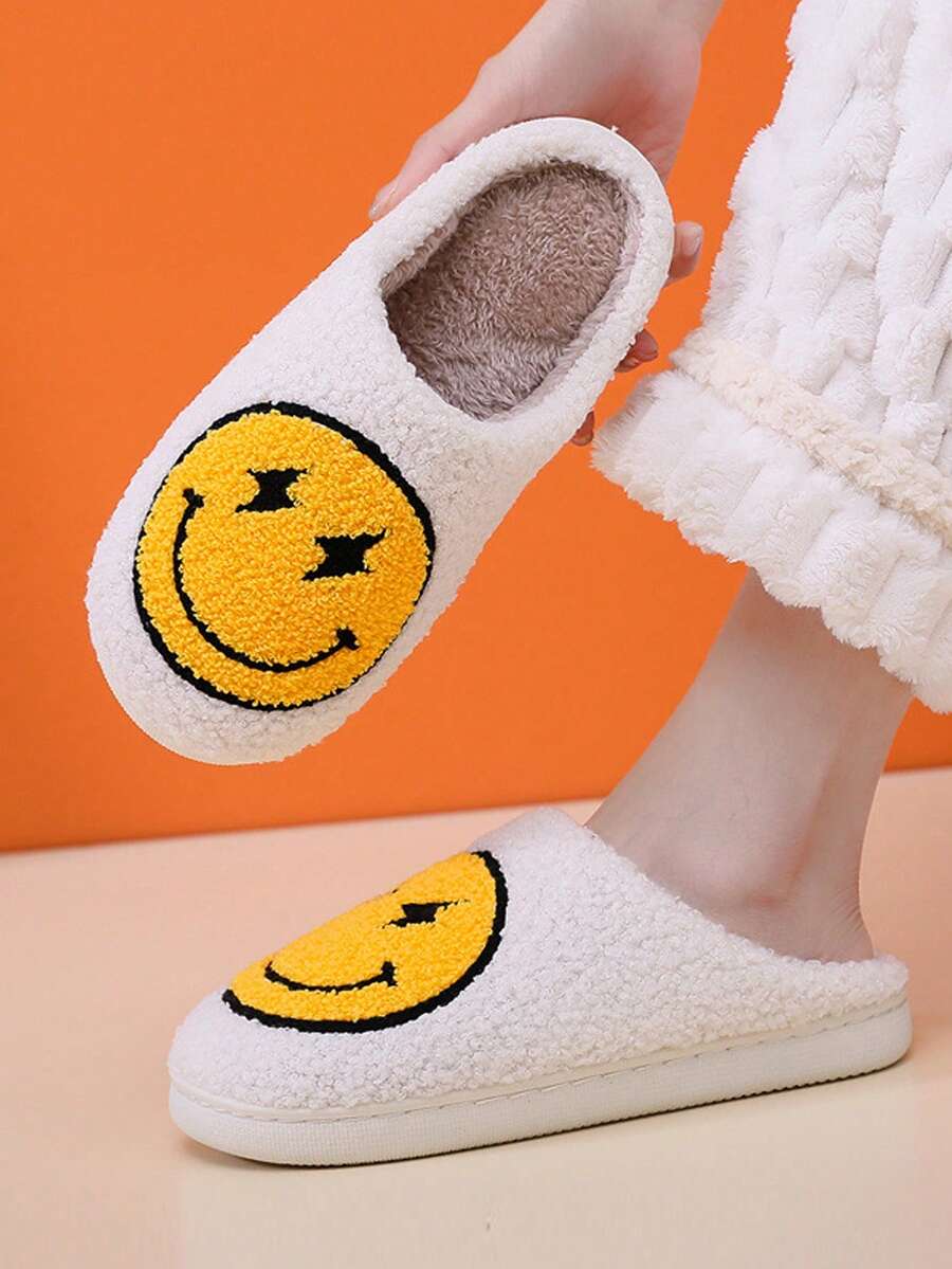 Winter Thick-soled Cartoon Indoor Slippers For Women, With Lightning, Face, Warm Fleece, Anti-skid And Thick Fur Design
