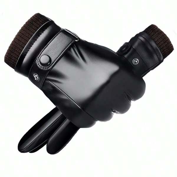 Winter women's PU washed leather mountaineering outdoor cycling bike motorcycle plus fleece thickened waterproof windproof and cold leather gloves Touch screen non-slip gloves travel ski gloves black