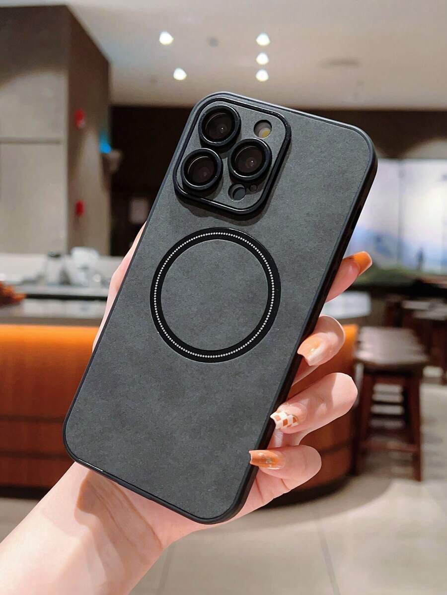 Wireless Charging Compatible Sheepskin Texture Cd Pattern Mobile Phone Case With Built-In Camera Lens Protector For Iphone, Shockproof
