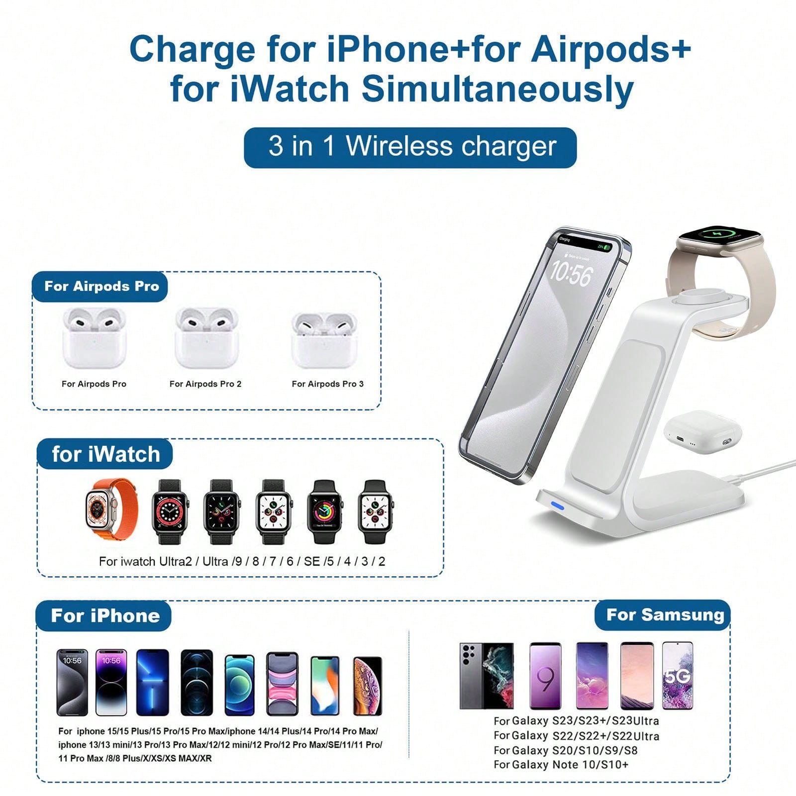 Wireless Charging Stand 3 In 1 Wireless Charger Dock Station For IPhone 15 14 13 12 11 Pro Max Plus XR XS 8 Plus, Ultra/9/SE/8/7/6/5/4/3/2, AirPods Pro2/Pro/3