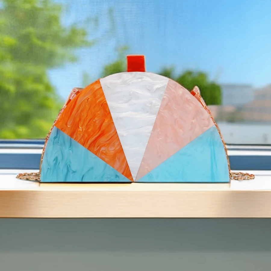 Women'S Acrylic Color Block Half Round Clutch Bag For Party