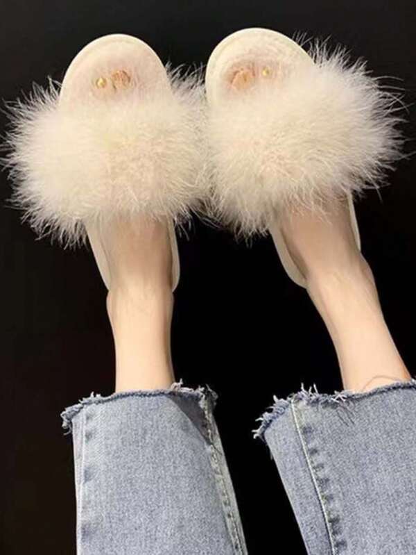 Women'S Autumn And Winter Plush Slippers, New Flat Word Slippers, High-Grade Feeling, Ladies' Wild Slippers