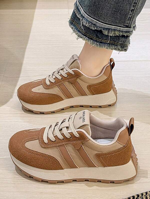 Women'S Spring New Chunky Dad Sneakers Thick Platform Waterproof Casual Sports Shoes Colorblock Round Toe Lace-Up High Top Canvas Shoes