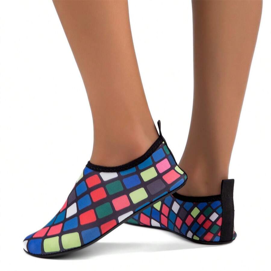 Women'S Beach Shoes, Quick-Drying, Anti-Skid, Water Sports, Checkered Diving Shoes