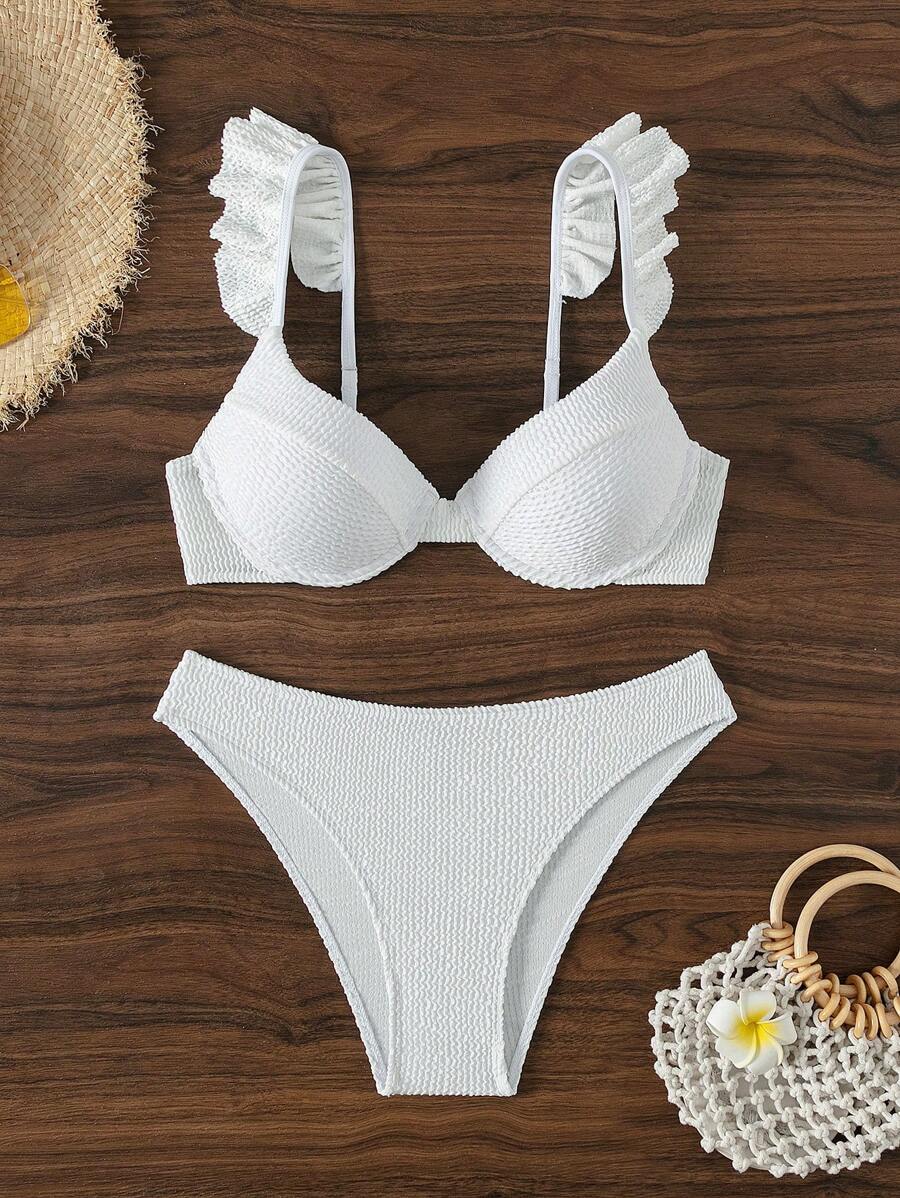 SHEIN Swim Mod Women'S Bikini Swimsuit With Frill Edges
