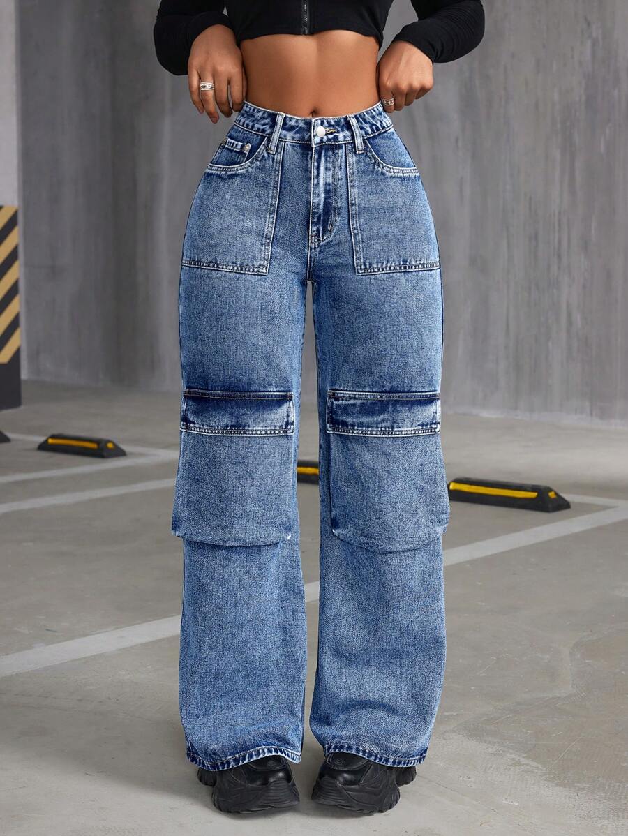 SHEIN ICON Women'S Cargo Denim Wide Leg Pants