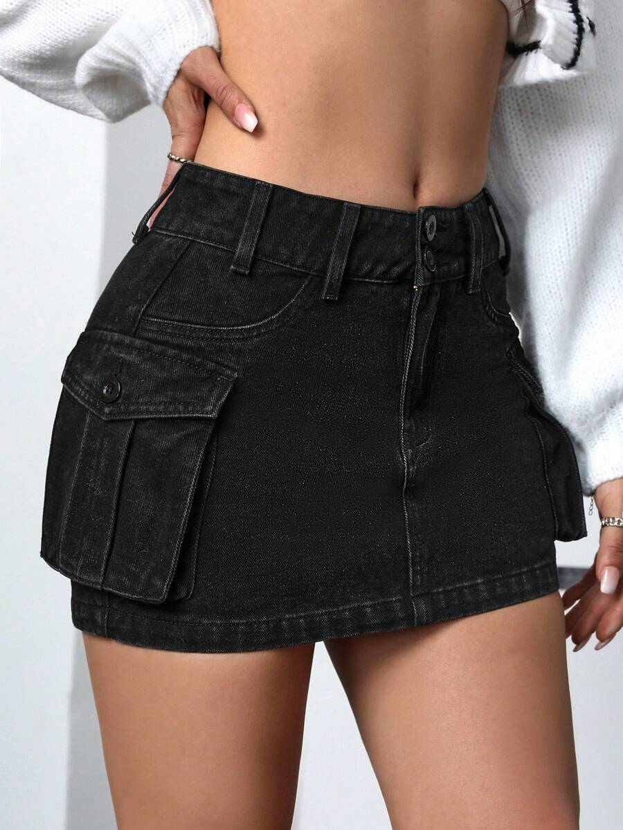 SHEIN PETITE Women'S Cargo Pocket Denim Skirt