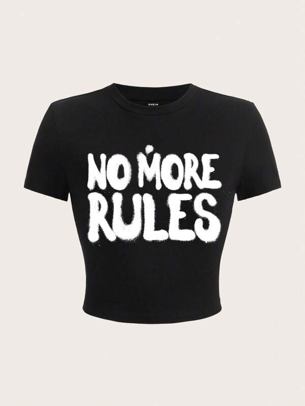 SHEIN EZwear Women'S Casual Letter Print Short Sleeve Crop Top T-Shirt For Summer