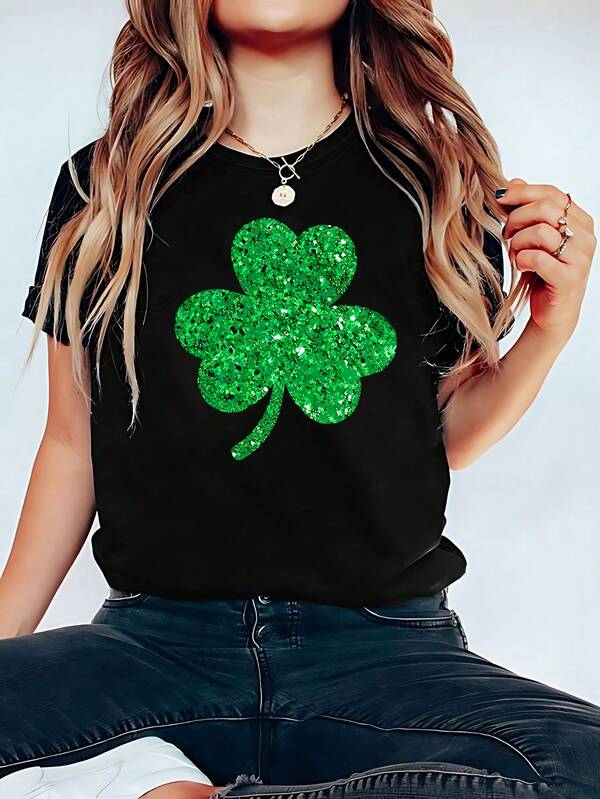 SHEIN LUNE Women'S Casual Short Sleeve T-Shirt With Clover Print