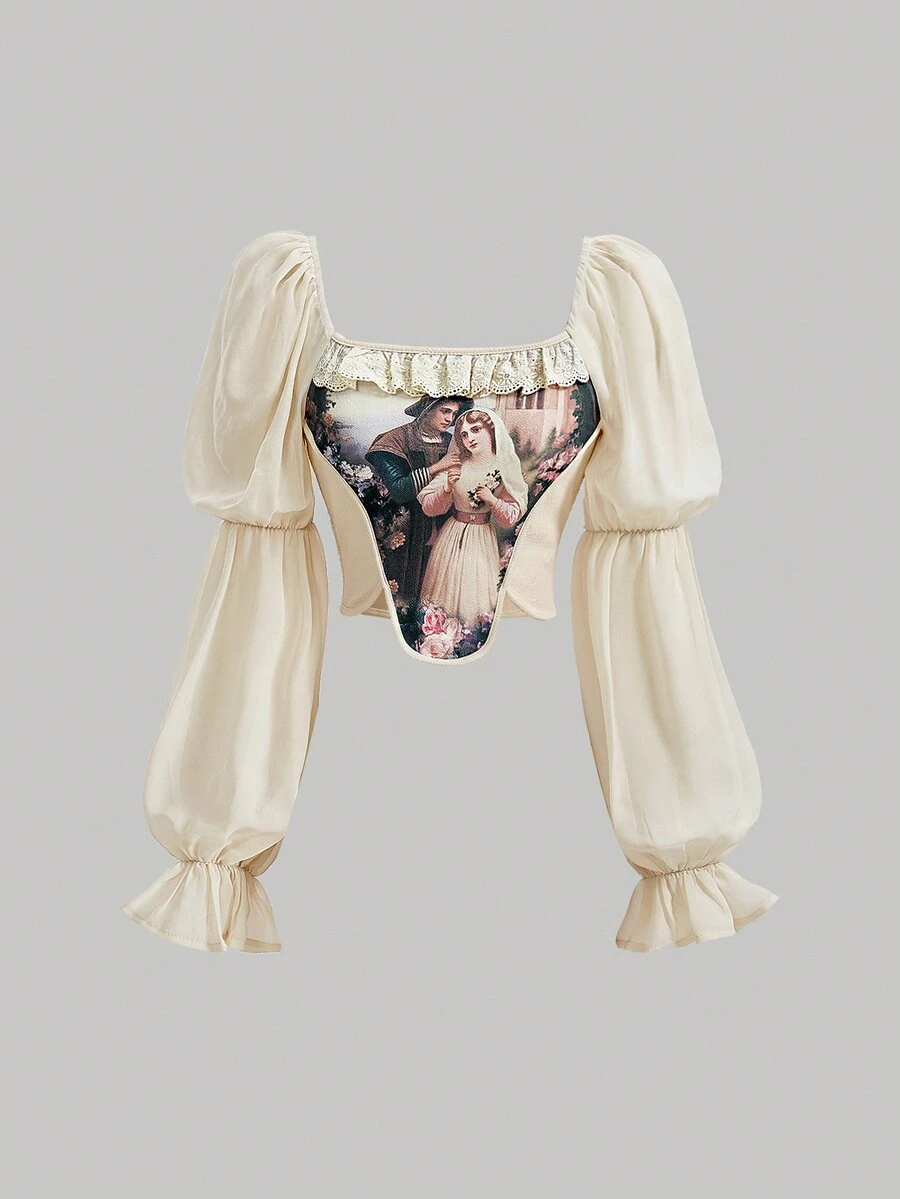 SHEIN MOD Women's Character Printed Lace Panel Shirt