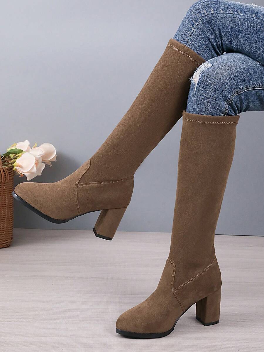 Women'S Chunky Heeled Mid-Calf Boots, High Elasticity And Sexy Thigh High Boots