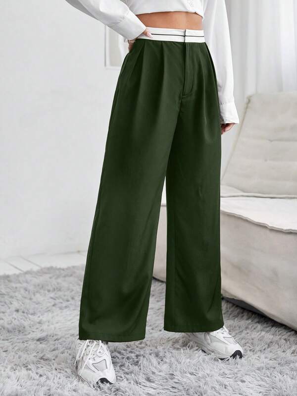 SHEIN PETITE Women'S Color Block High-Waist Wide-Leg Pants