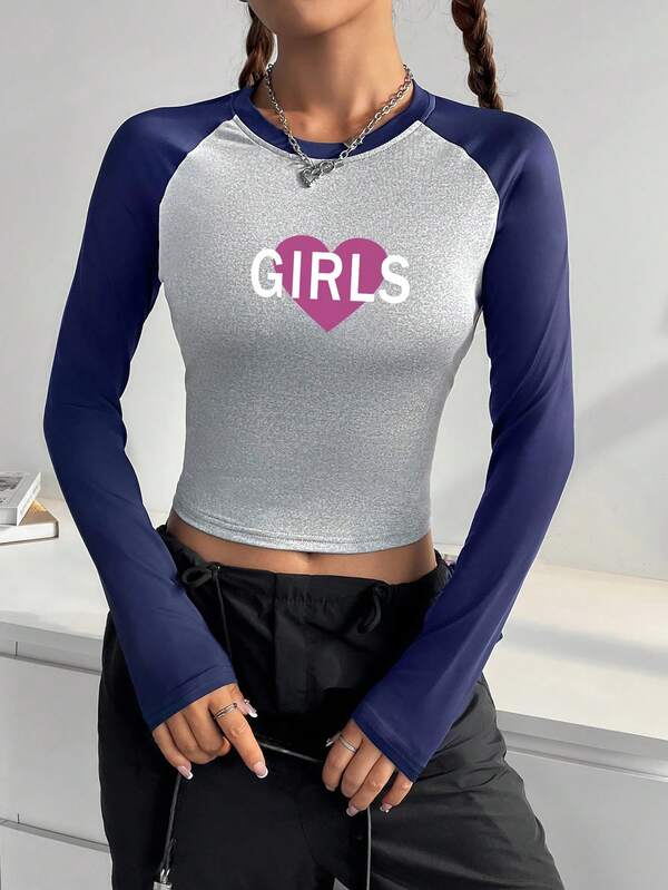 Women's Colorblock Letter Printed Drop Shoulder Short Sleeve T-Shirt