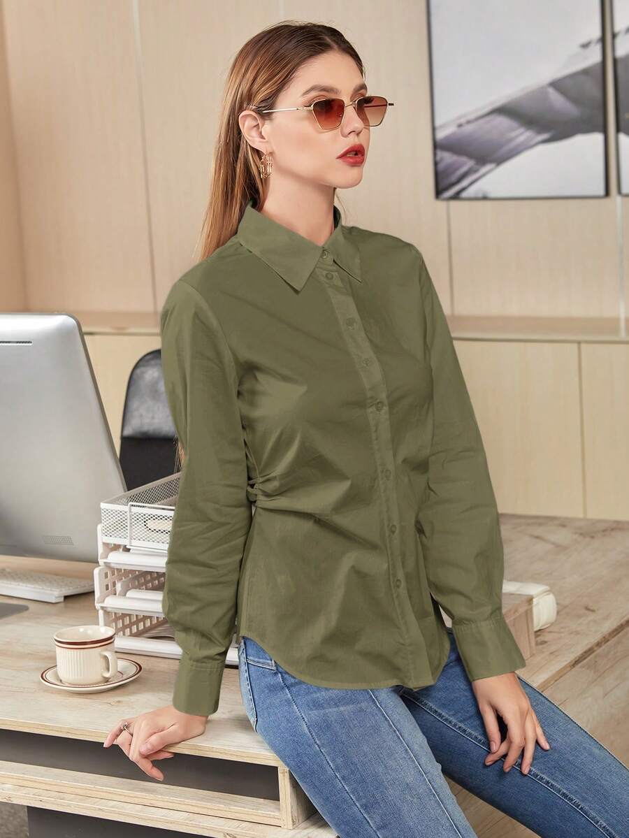 SHEIN Mulvari Women'S Commuting Long Sleeve Shirt