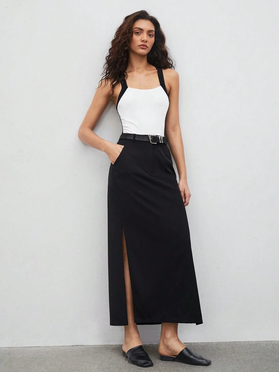 SHEIN BIZwear Women'S Contrast Color Cross Back Bodysuit
