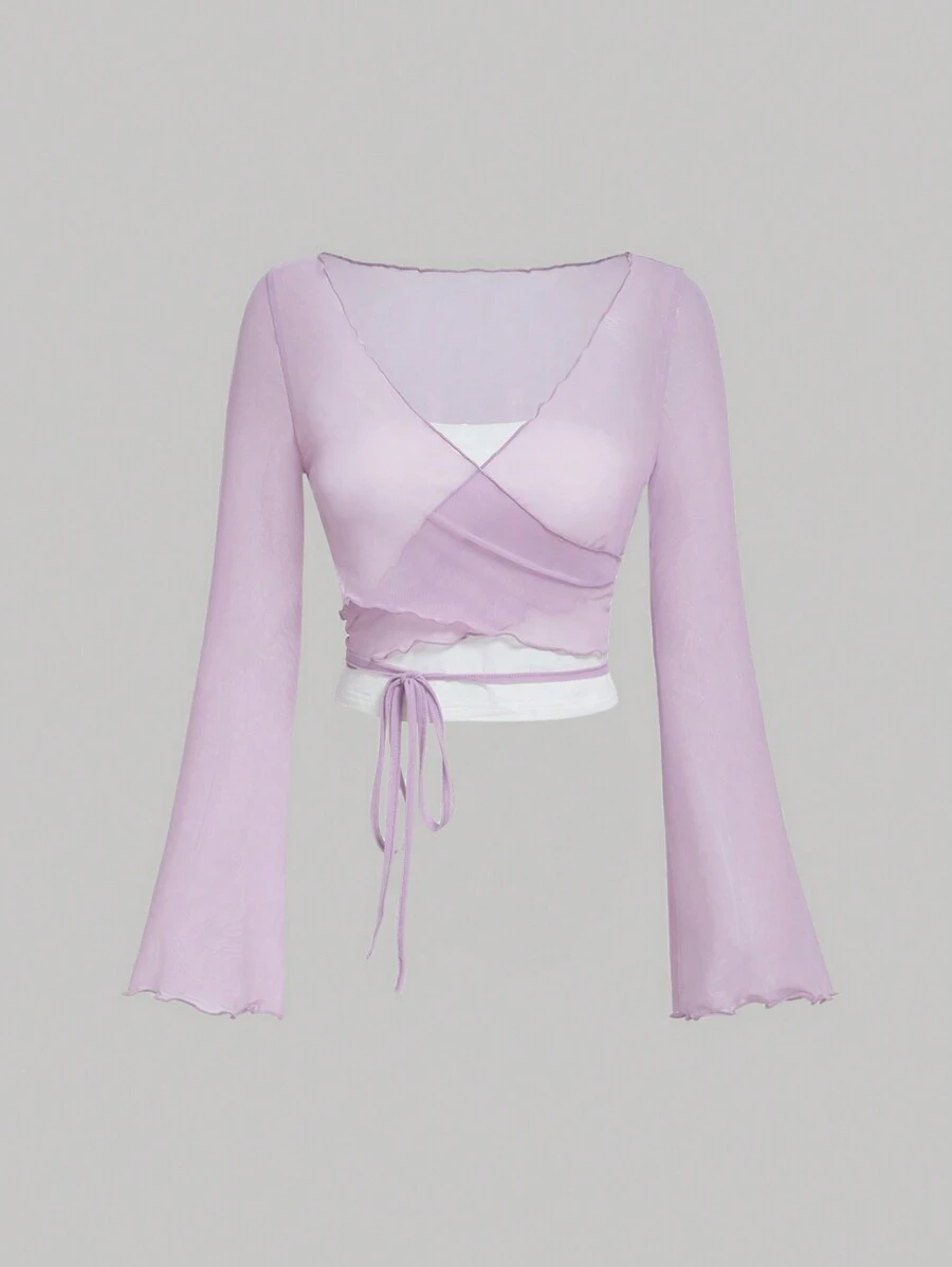 SHEIN MOD Women'S Cross Wrap Sheer Mesh Top