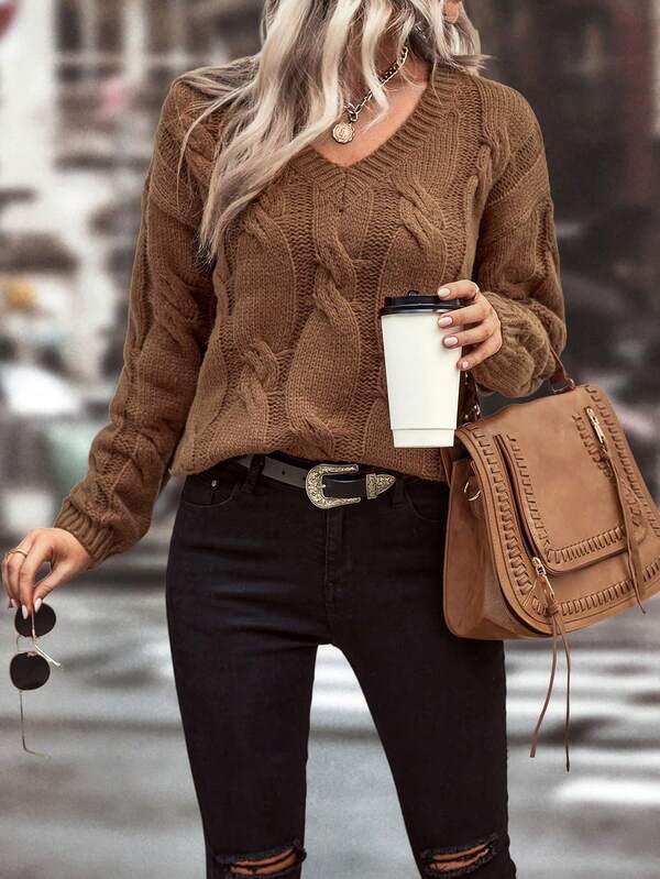SHEIN LUNE Women'S Drop Shoulder Twisted Knit Sweater