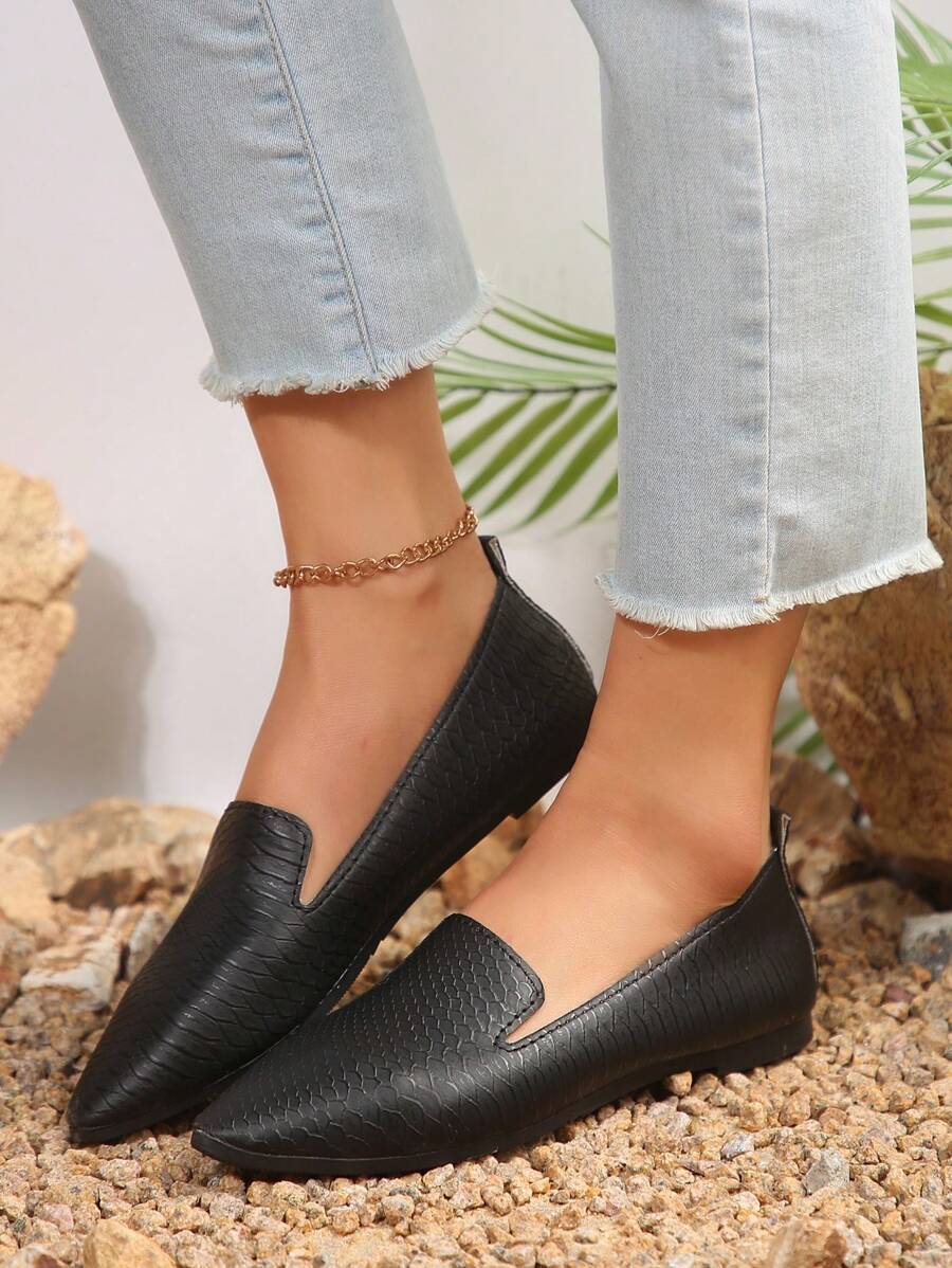 Women'S Fashionable And Comfortable Snake Skin Patterned Slip-On Flat Shoes, Random Print, Black