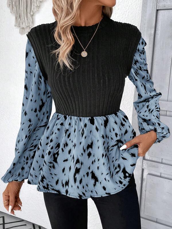 SHEIN LUNE Women'S Floral Patchwork Lantern Sleeve Top